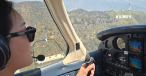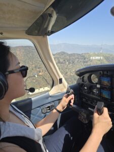 Gallery Female student pilot at Fly Over LA prepares to pass the Hollywood sign on a discovery flight in Van Nuys, California Female student pilot smiling getting out of aircraft after first flight. Fly Over LA’s chief instructor performs a perfect barrel roll with a scenic sunset behind him in a Pitts special S-2B biplane Young couple on a date night flight over Van Nuys Student pilot takes a moment to give thumbs up to the camera while piloting a Cessna over Los Angeles at night Couple in aircraft
